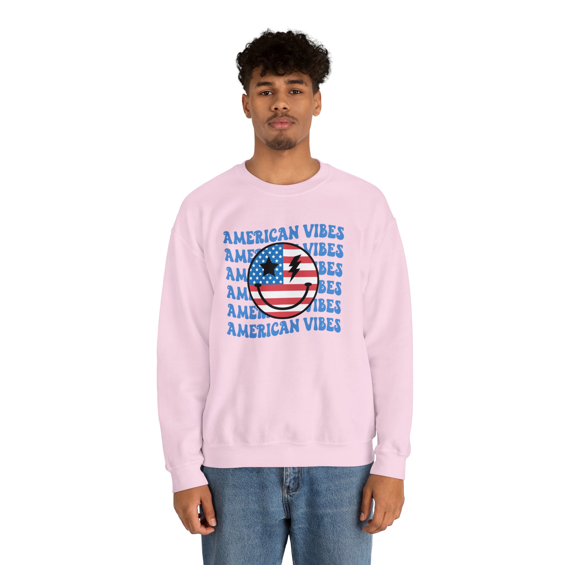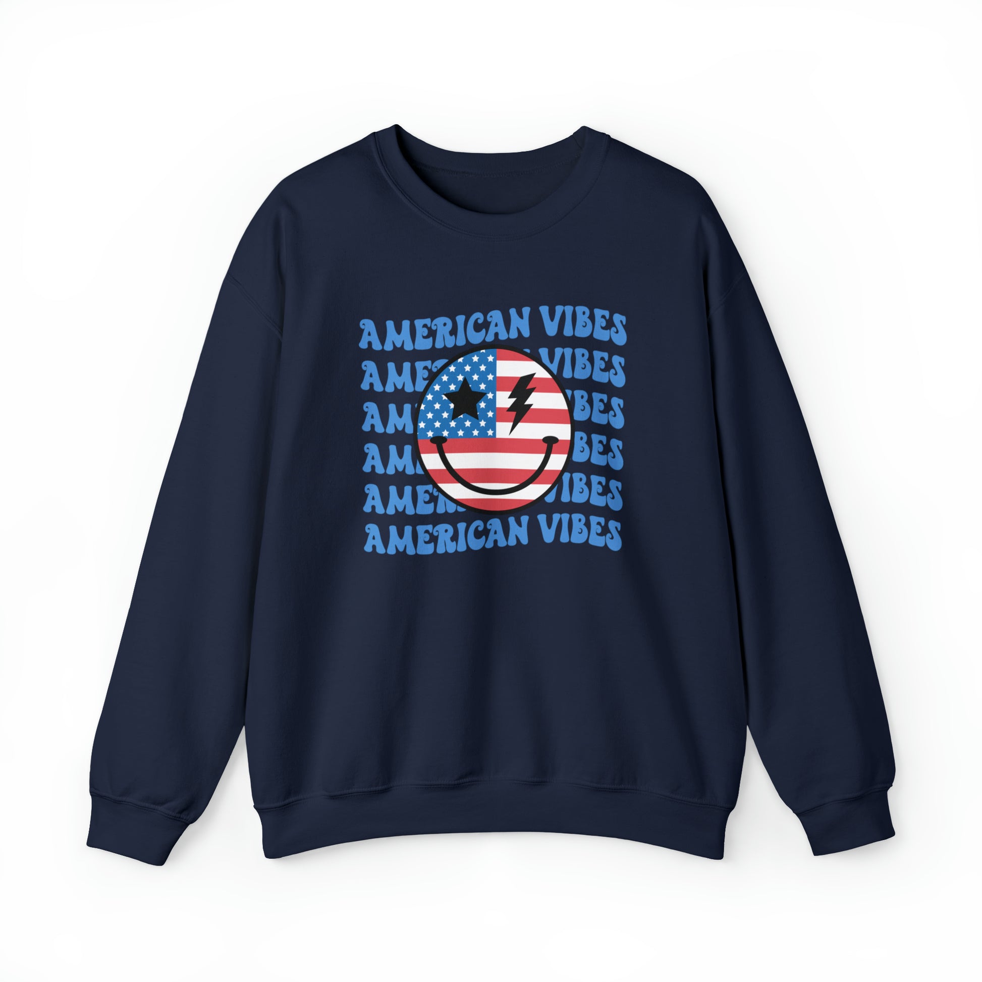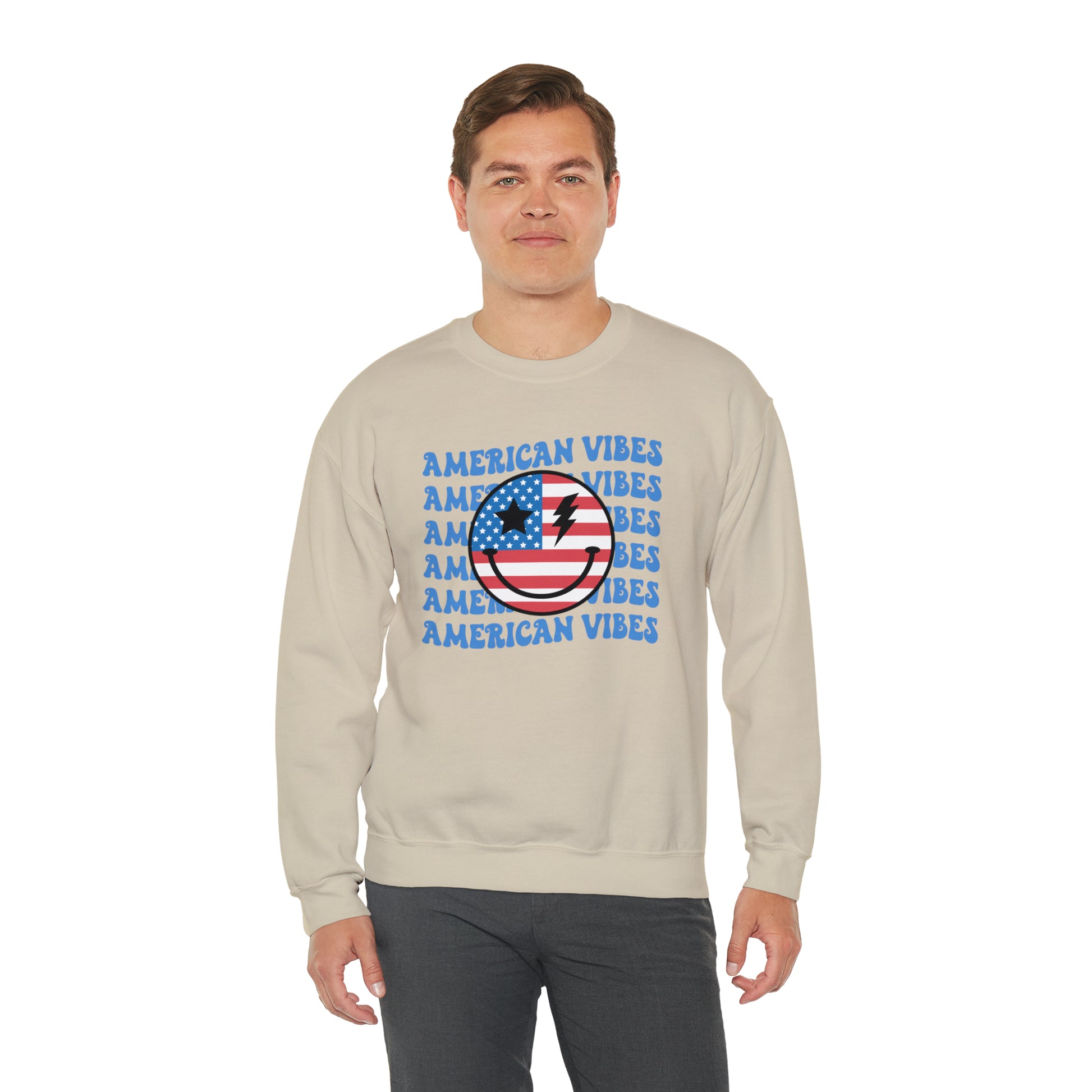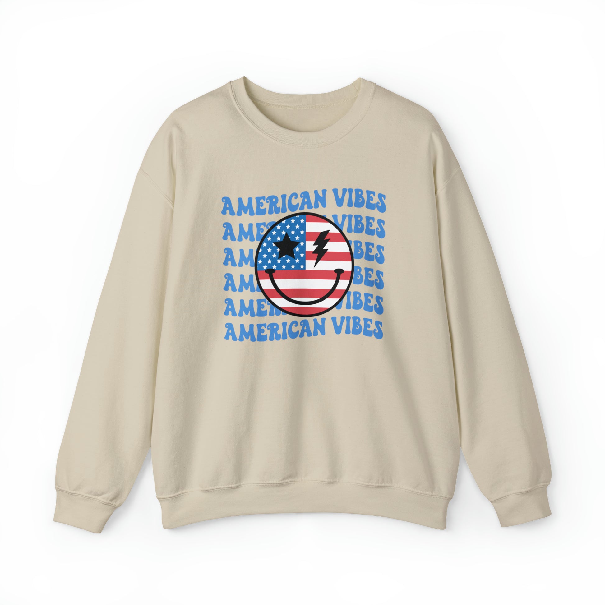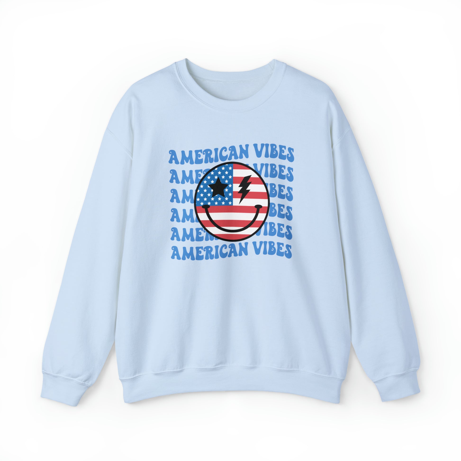 USA American Vibes Flag Smiley Face Heavy Blend™ Crewneck Sweatshirt