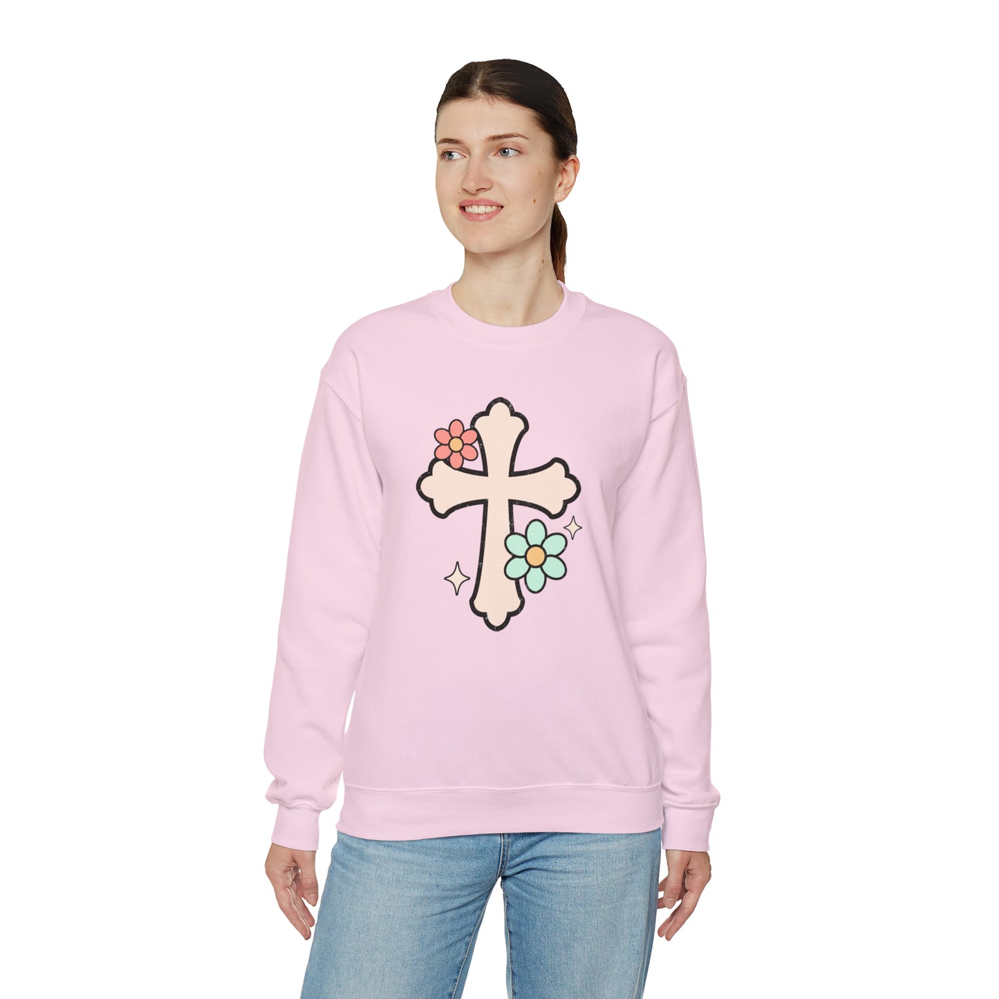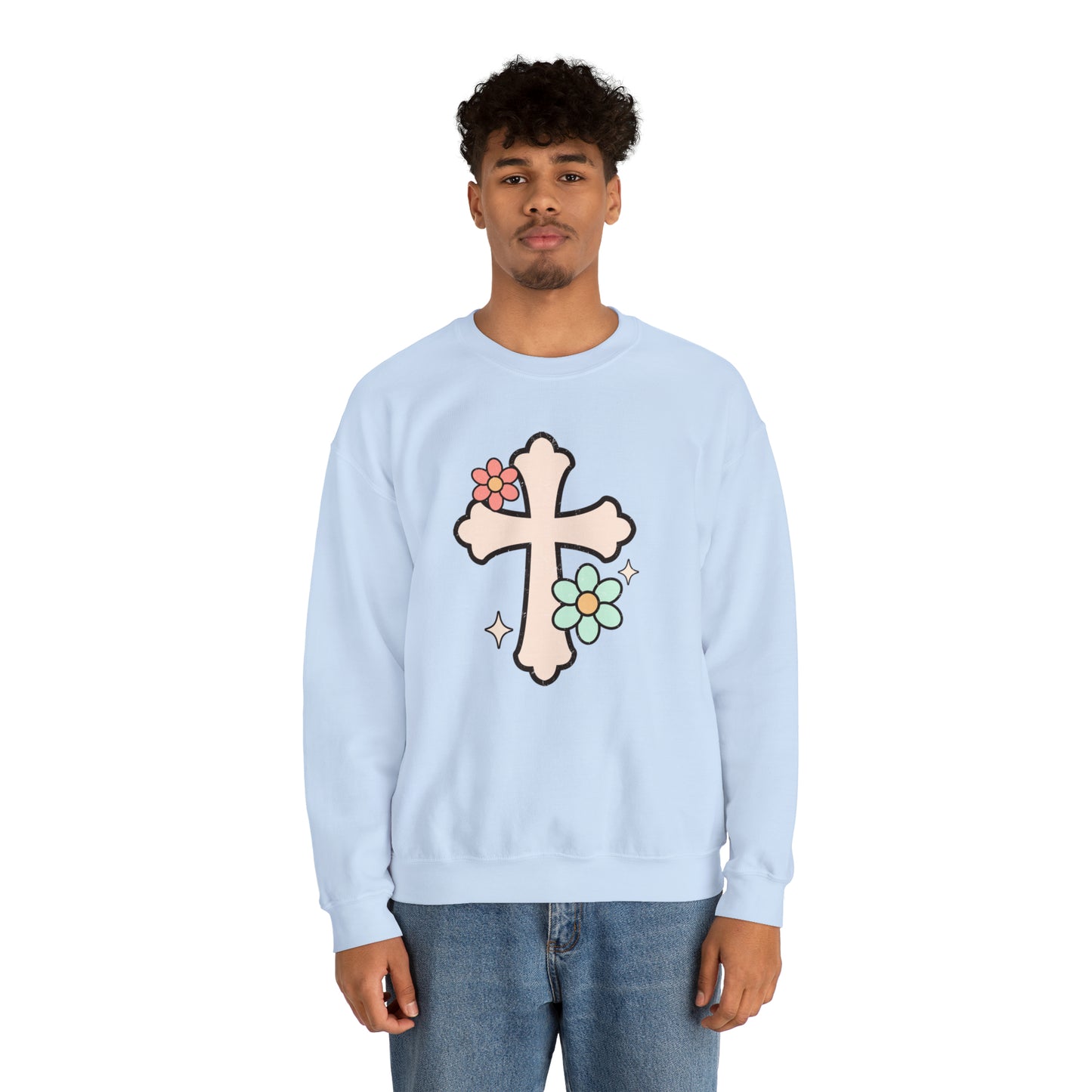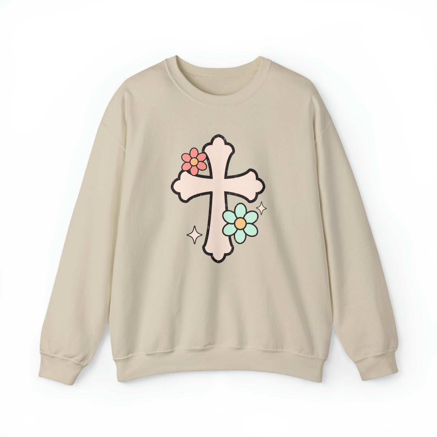 Vintage Floral Cross Design Heavy Blend™ Crewneck Sweatshirt