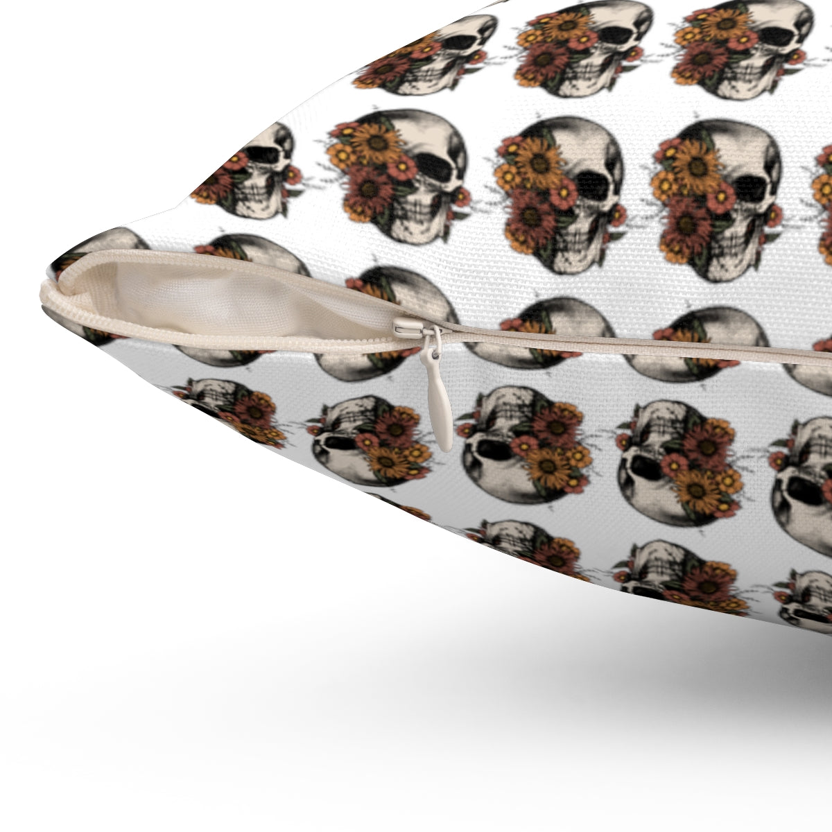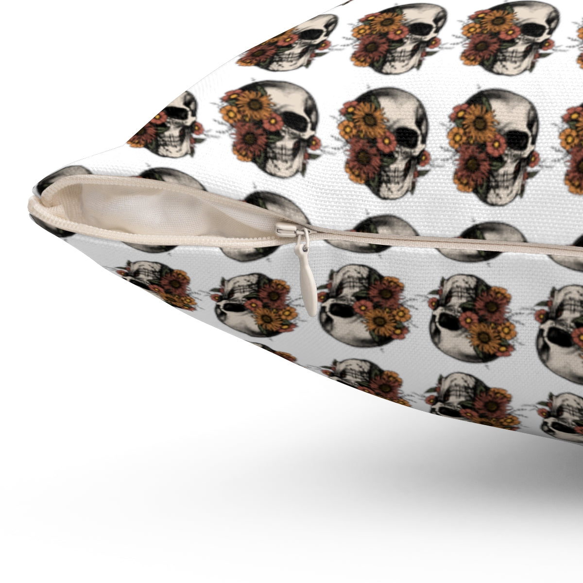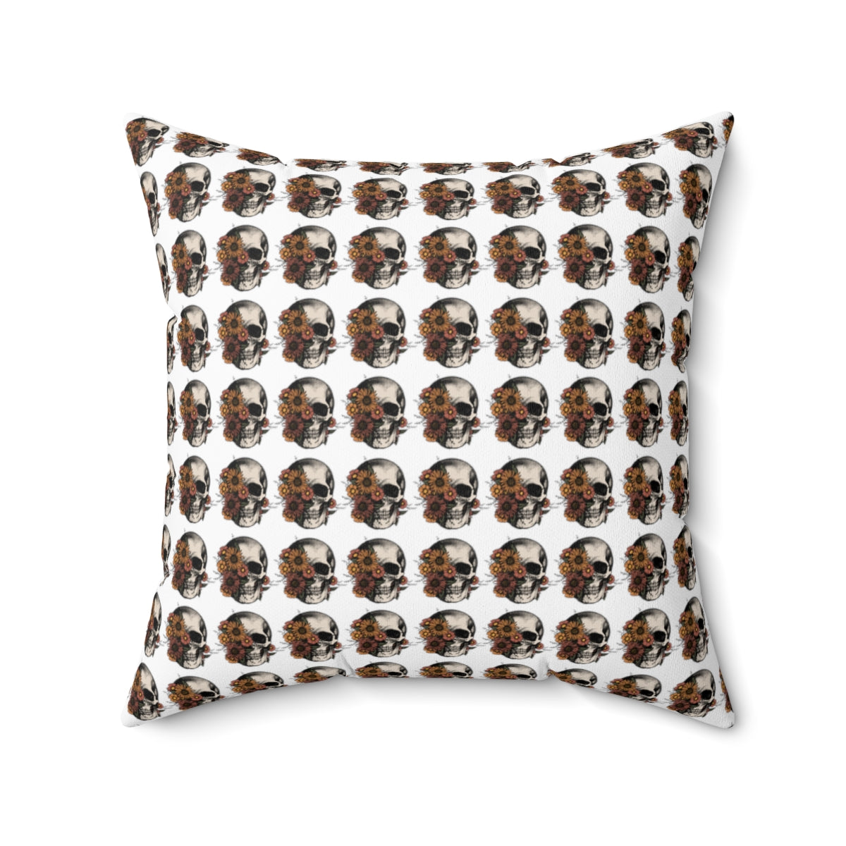 White Boho Floral Skeleton Pattern Fall Halloween Spun Polyester Square Pillow