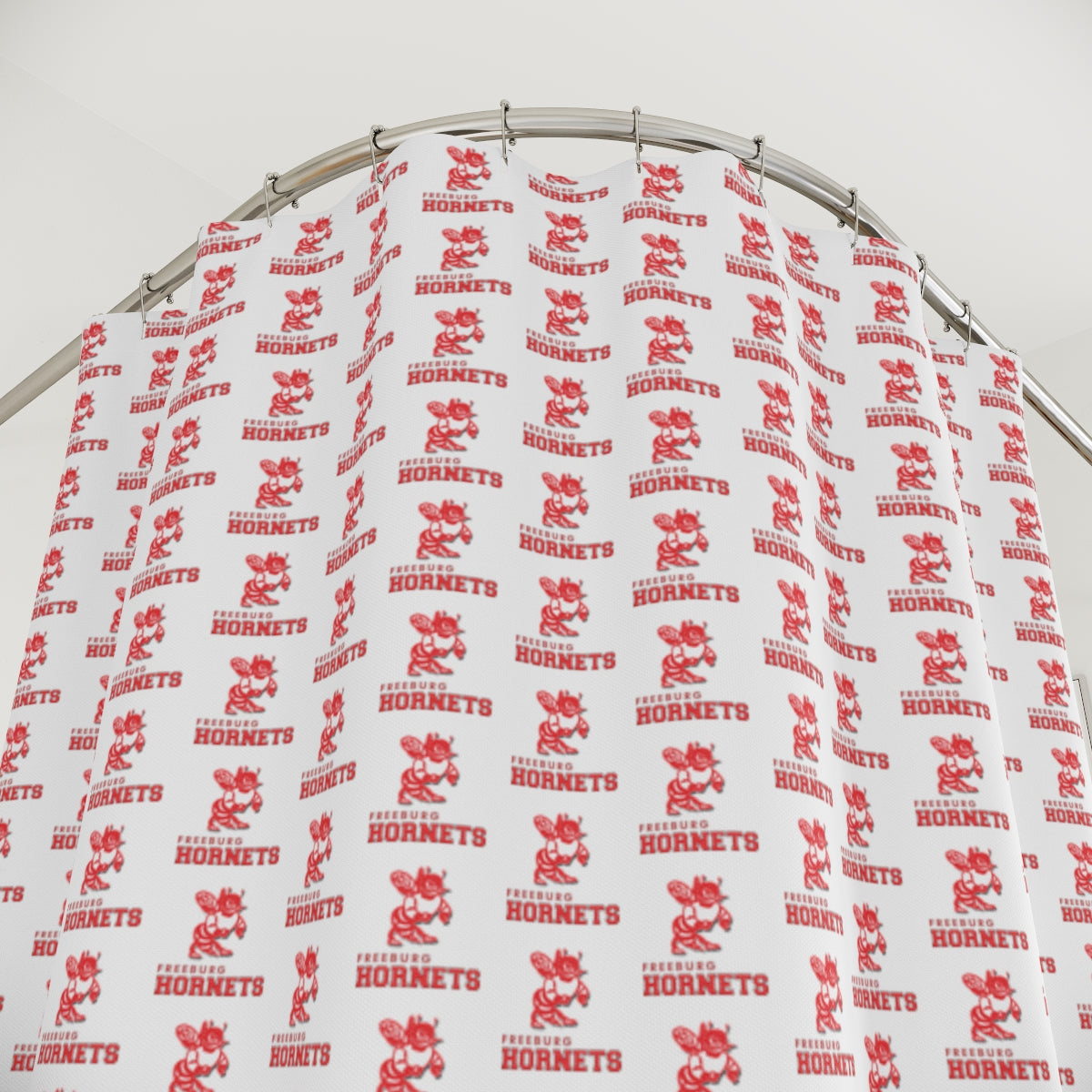 White Freeburg Hornets Pattern Polyester Shower Curtain