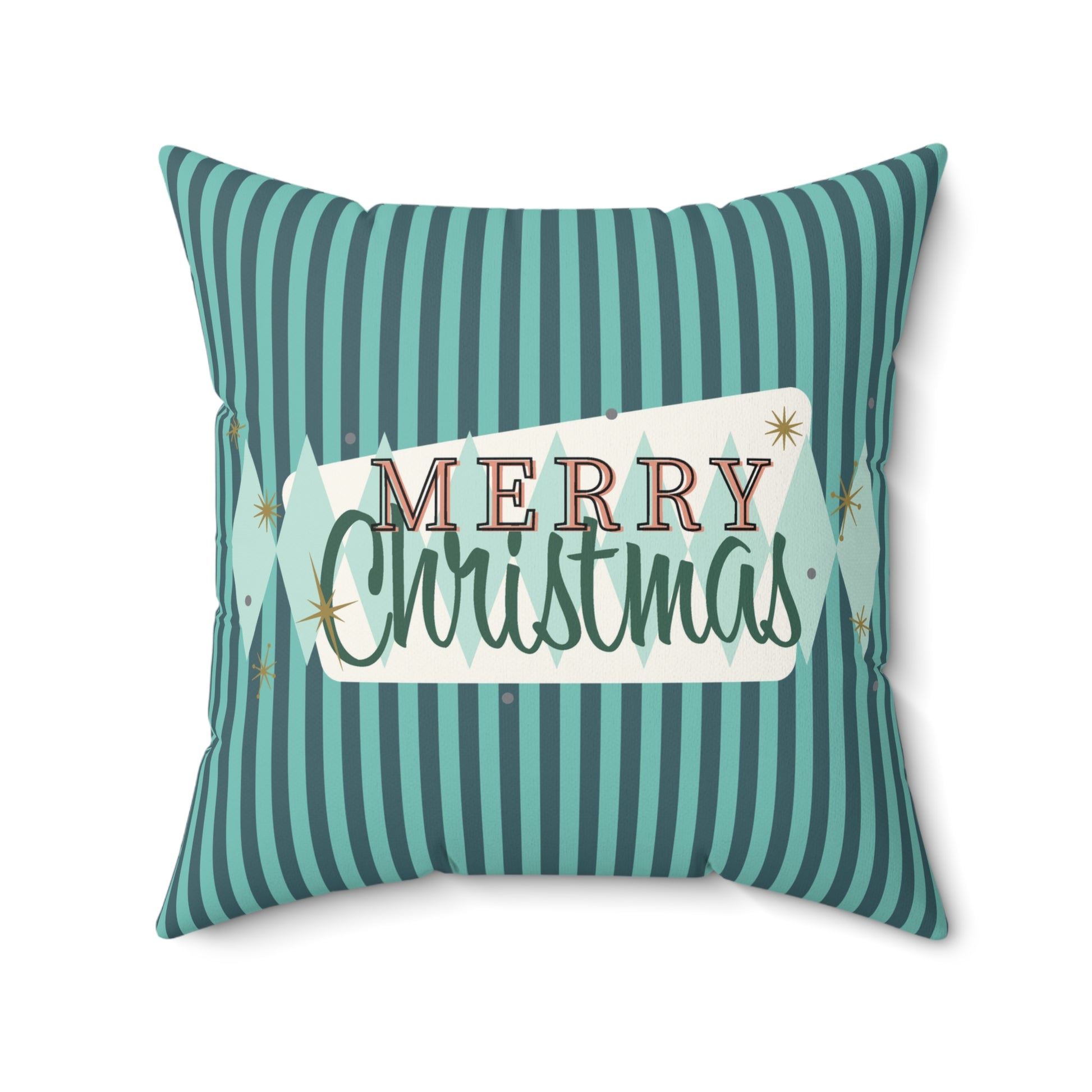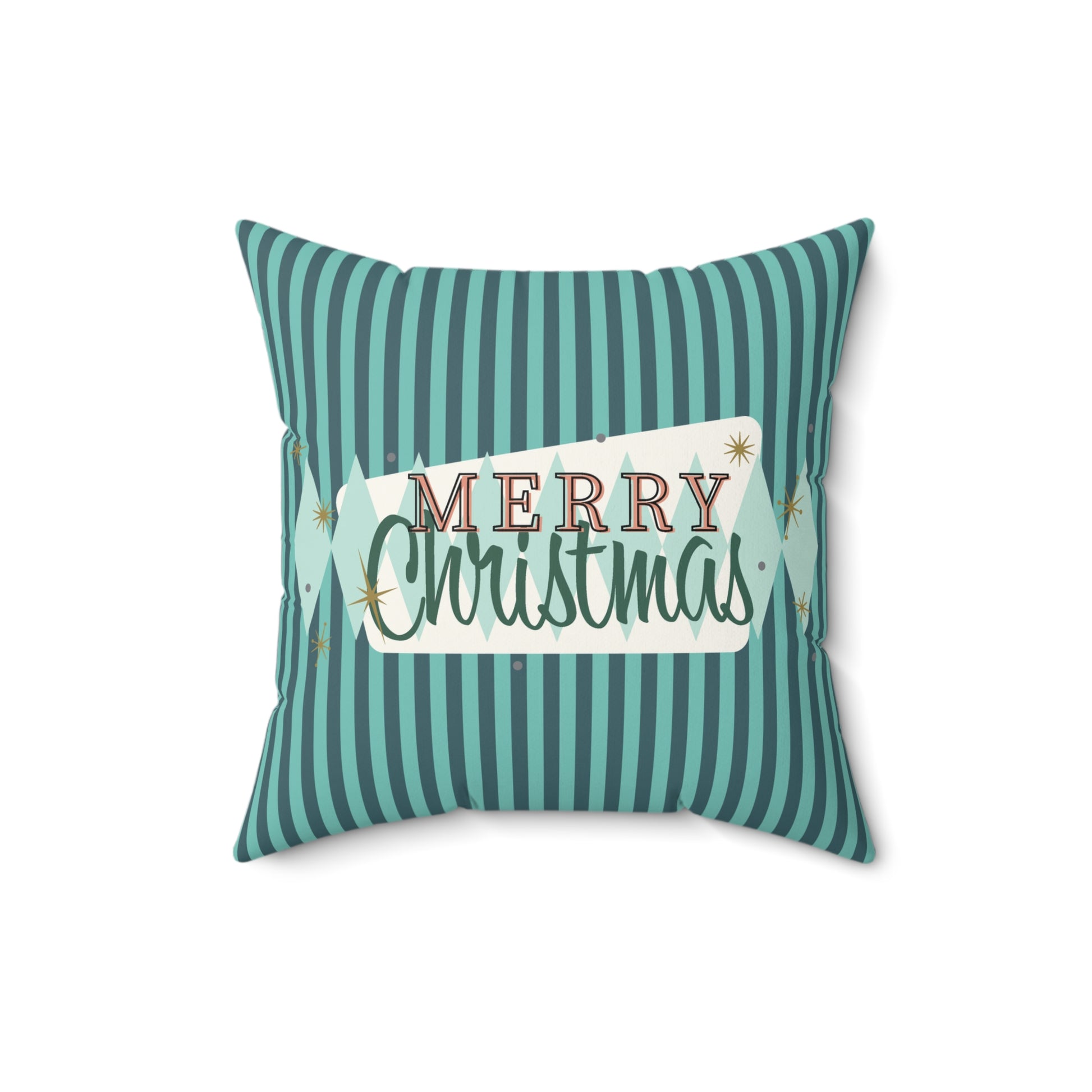 Retro Merry Christmas Winter Stripes Christmas/ Holiday Polyester Square Pillow