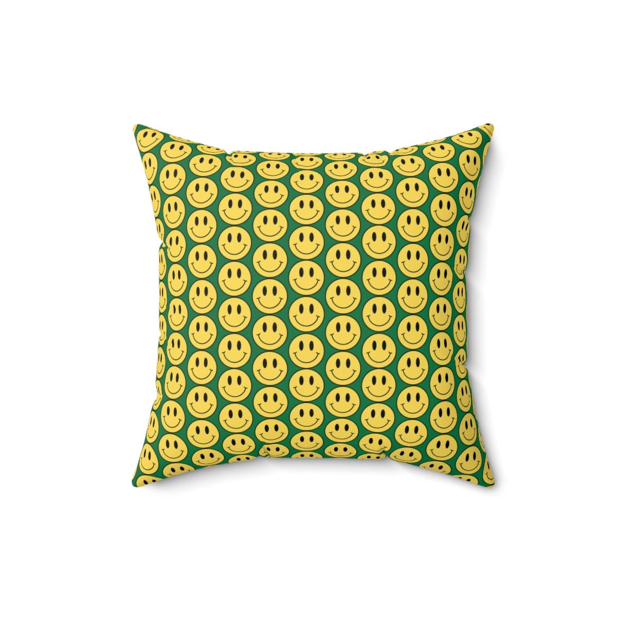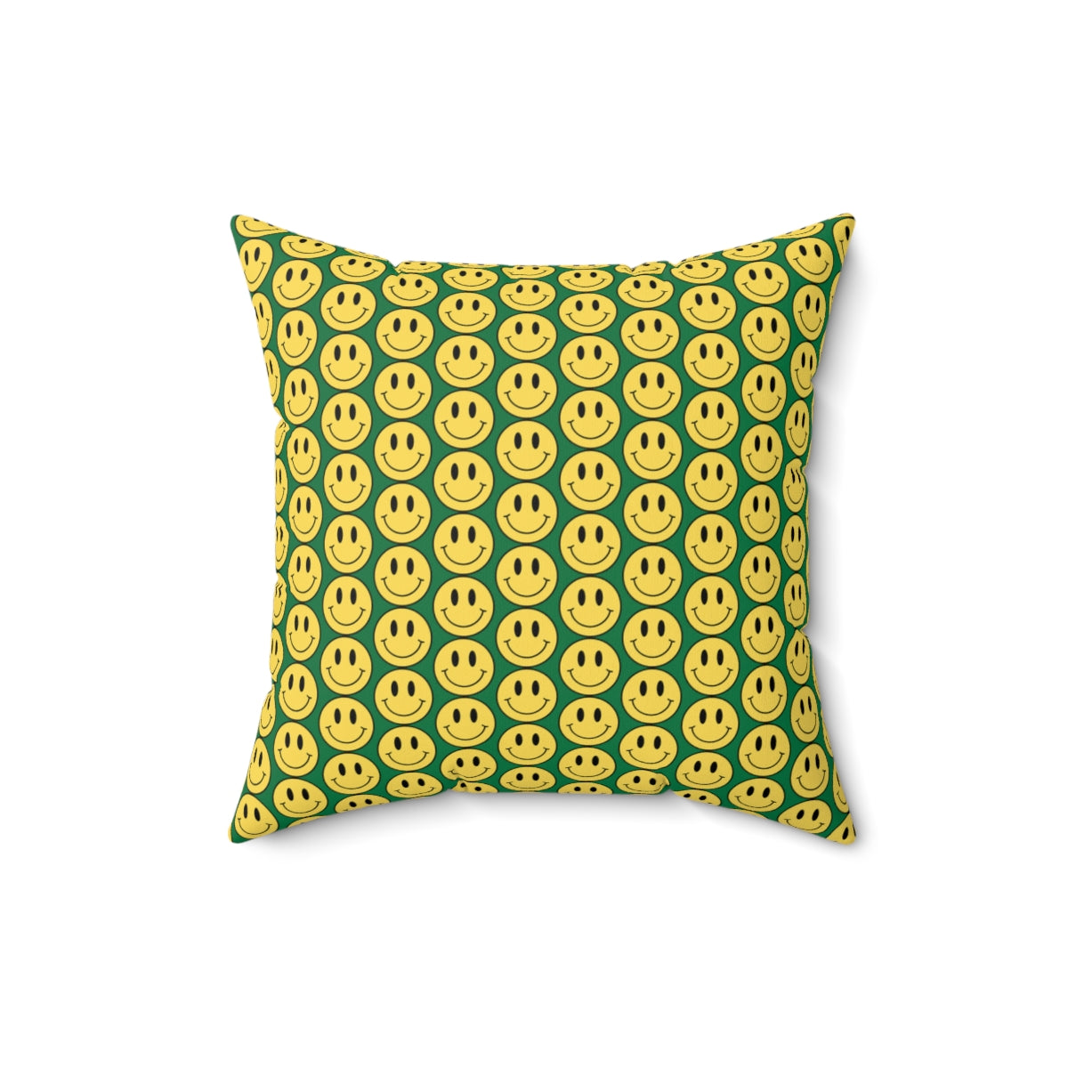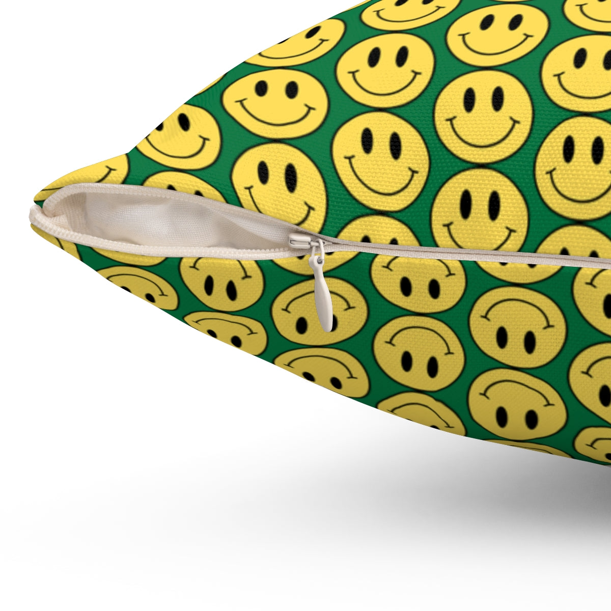 Yellow and Dark Green Smiley Face Pattern Spun Polyester Square Pillow