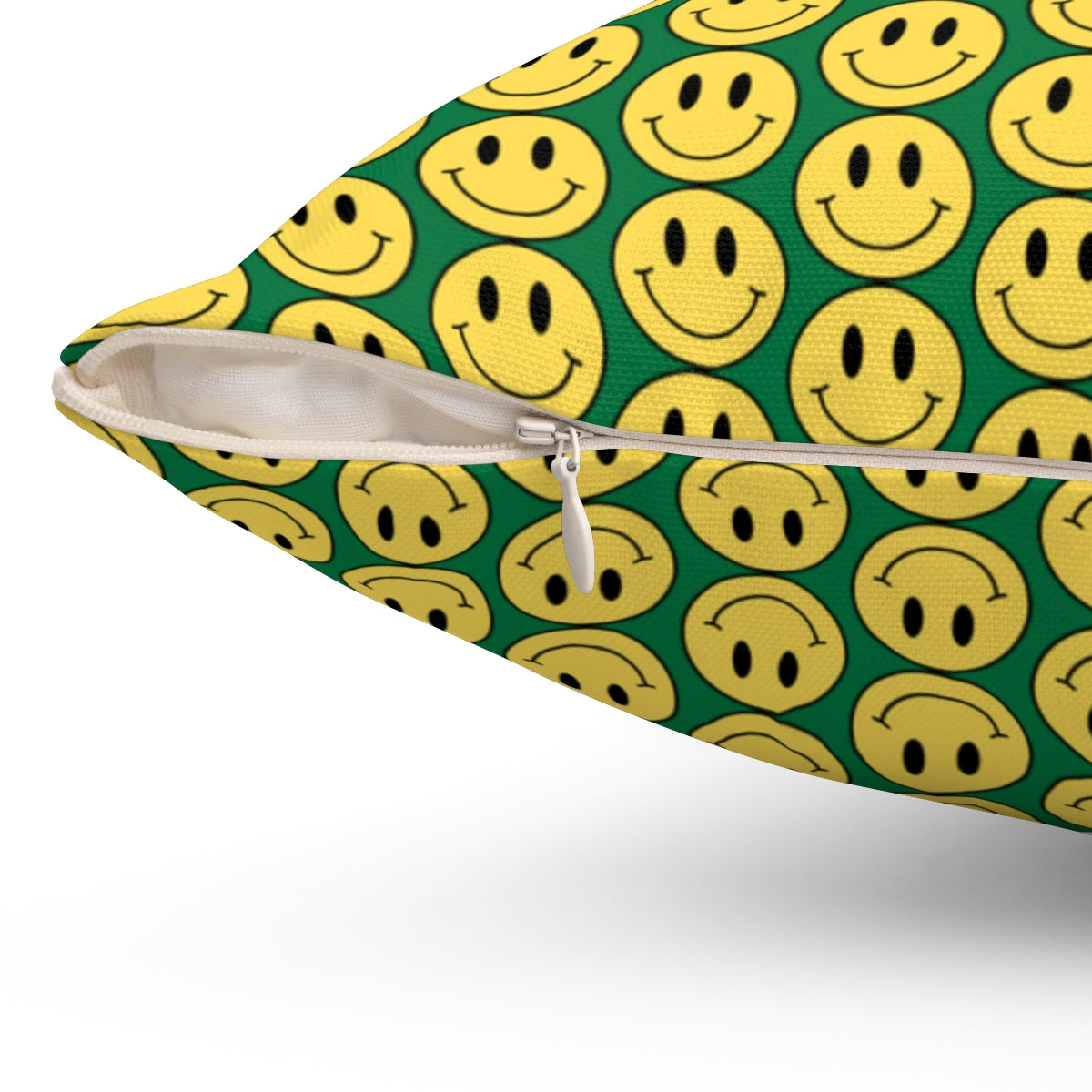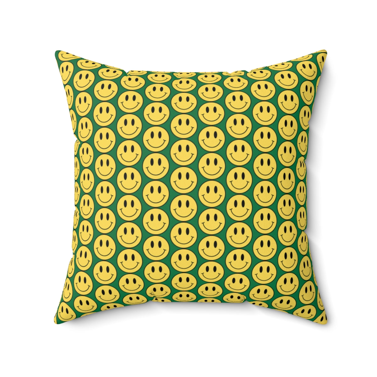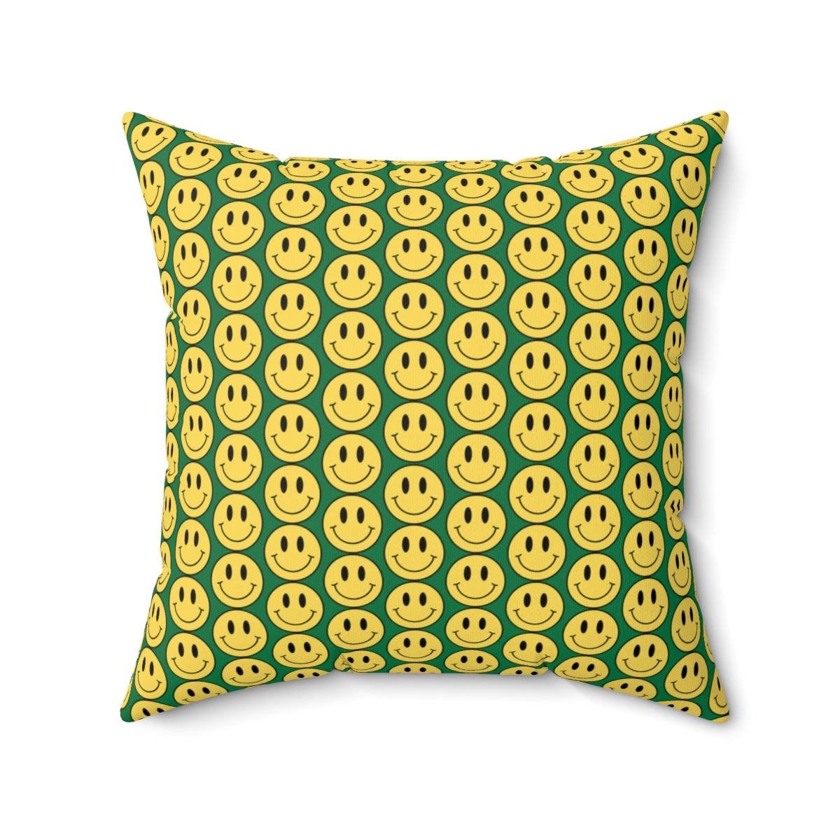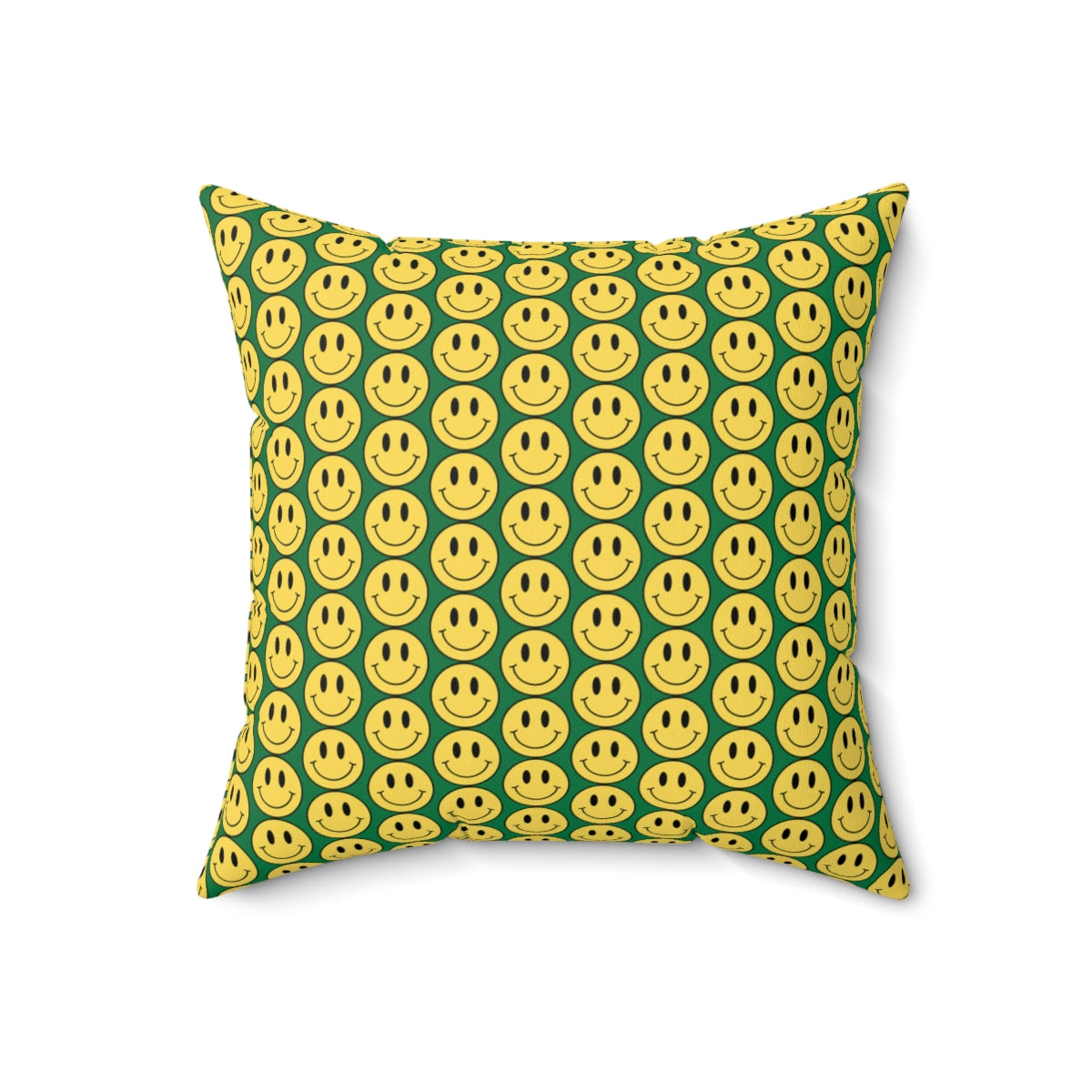 Yellow and Dark Green Smiley Face Pattern Spun Polyester Square Pillow
