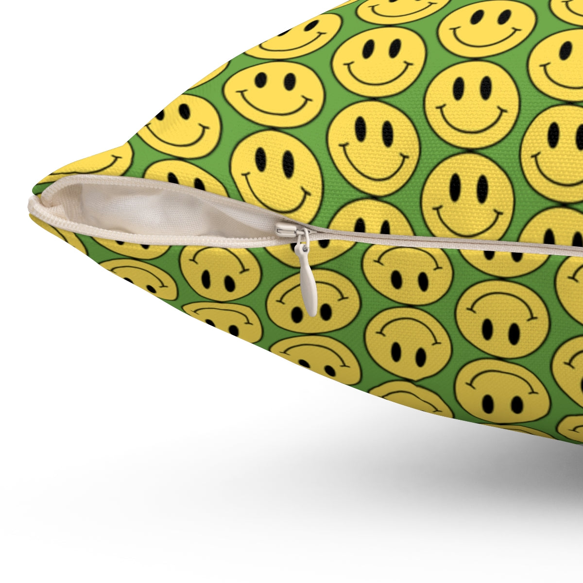 Yellow and Green Smiley Face Pattern Spun Polyester Square Pillow