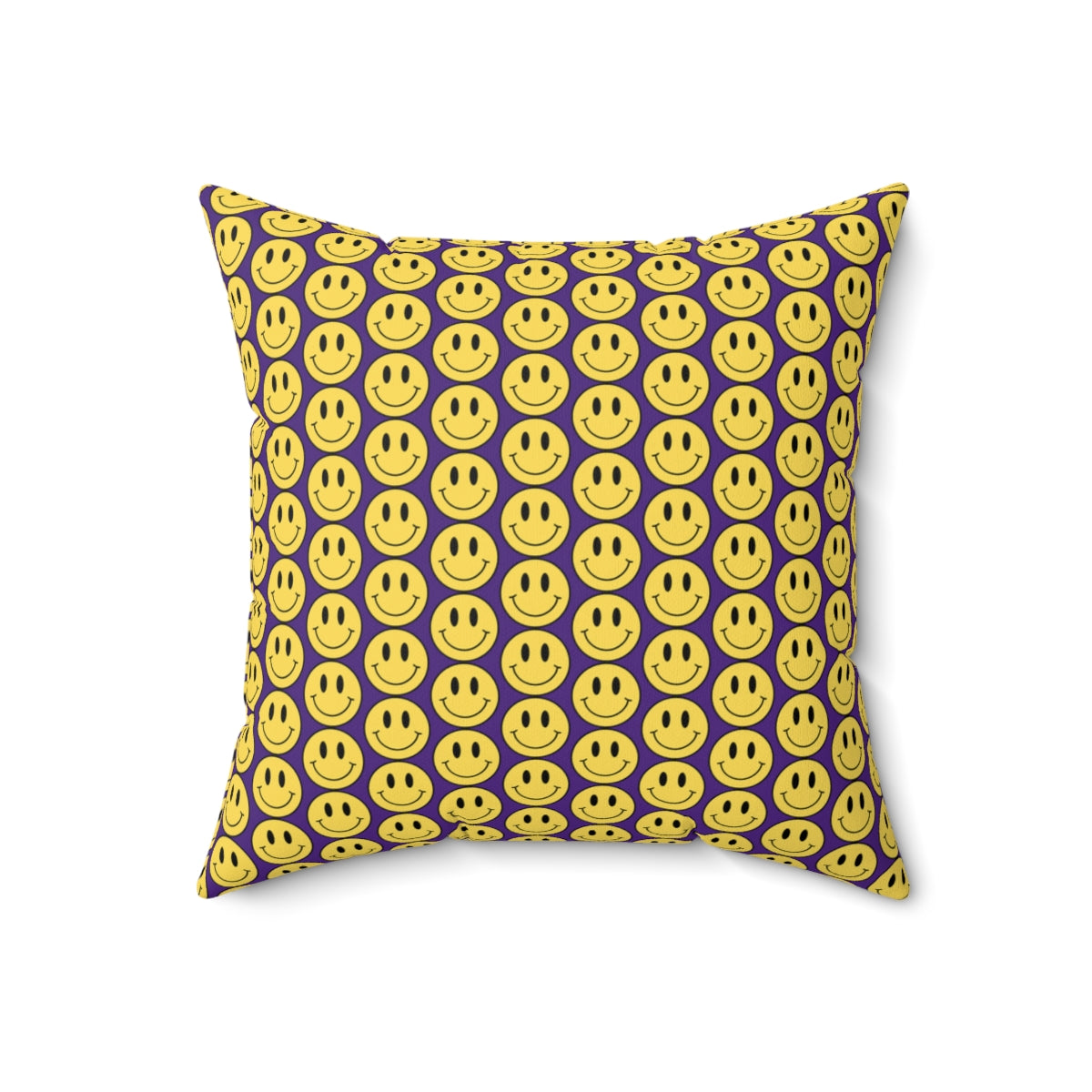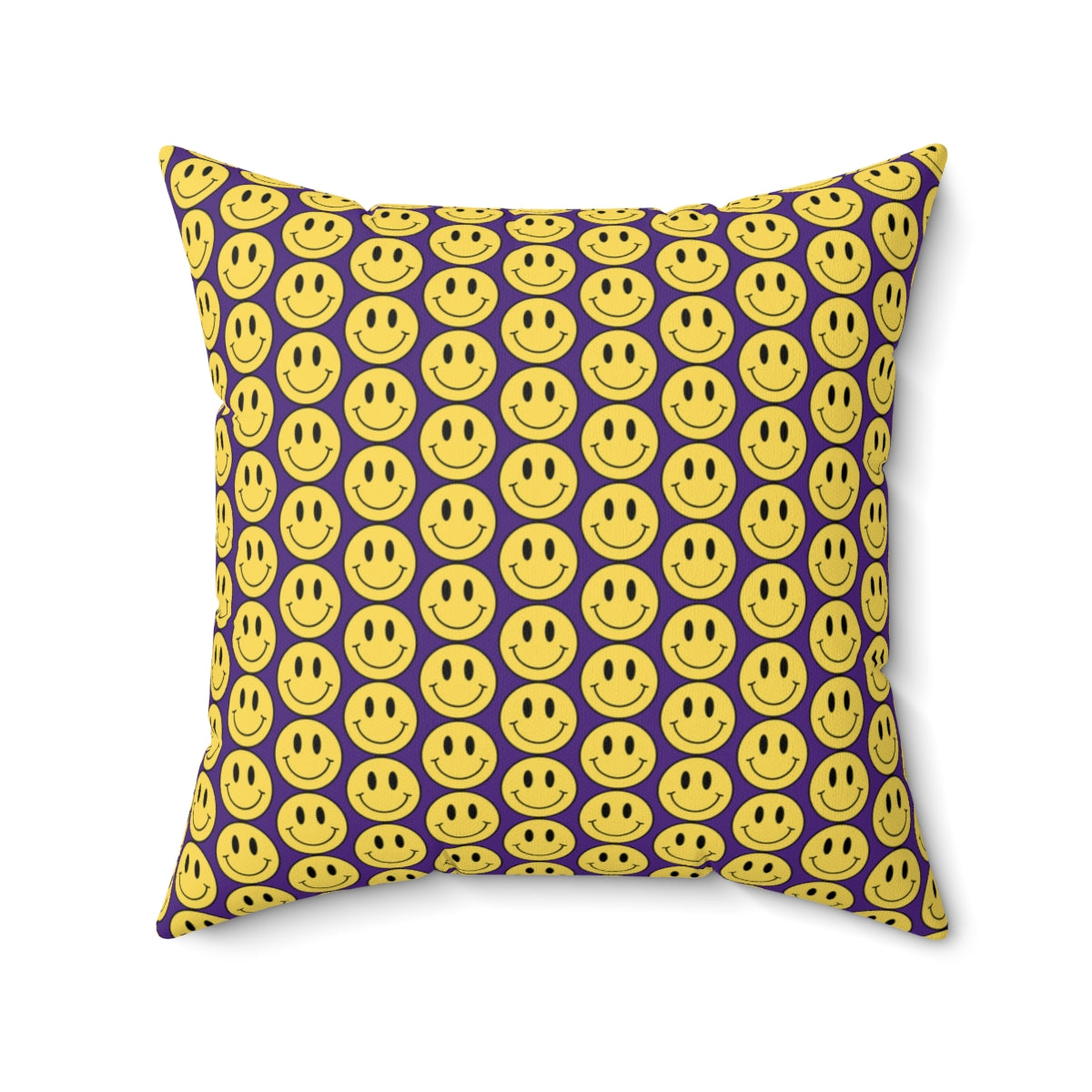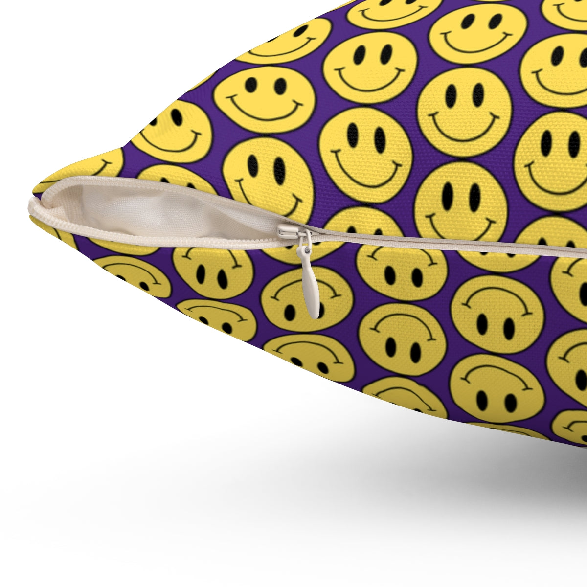 Yellow and Purple Smiley Face Pattern Spun Polyester Square Pillow