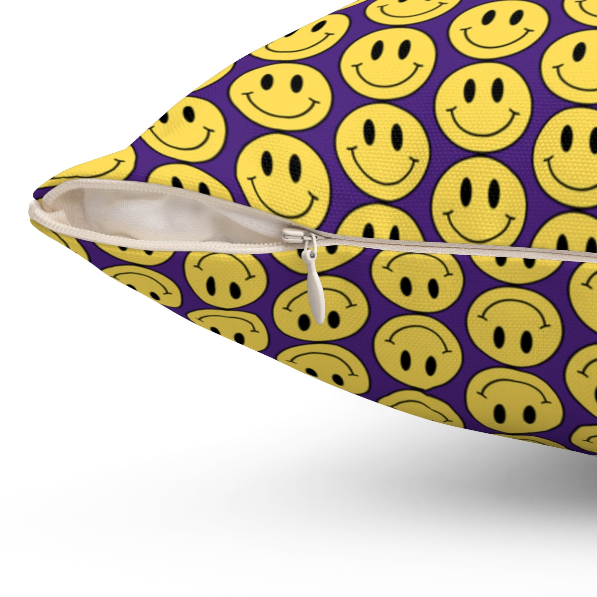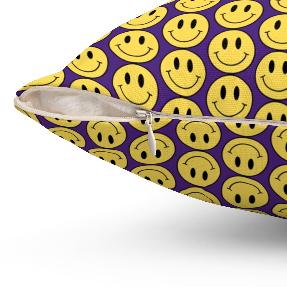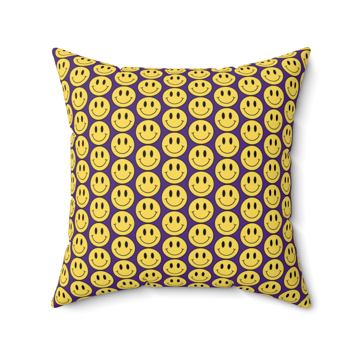 Yellow and Purple Smiley Face Pattern Spun Polyester Square Pillow