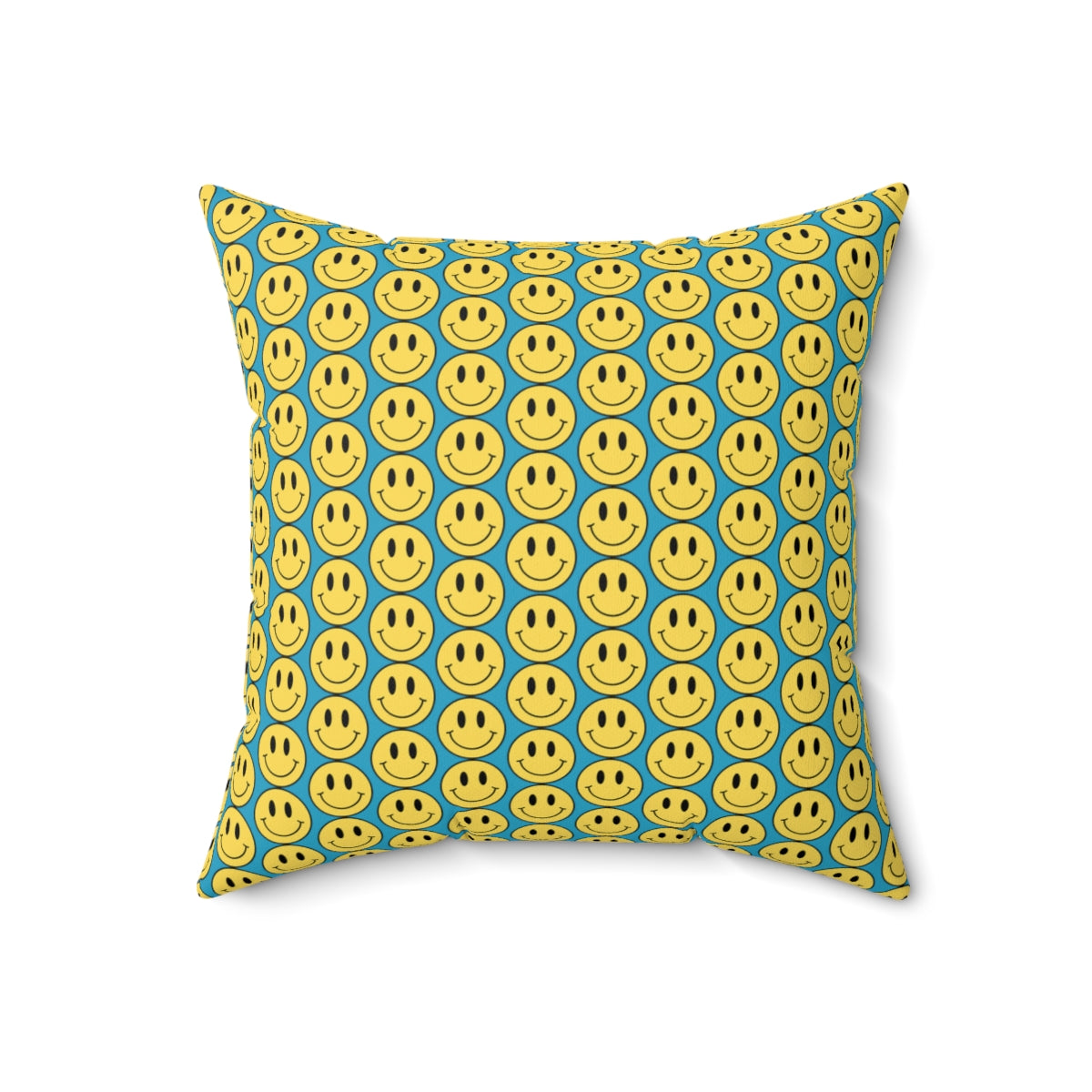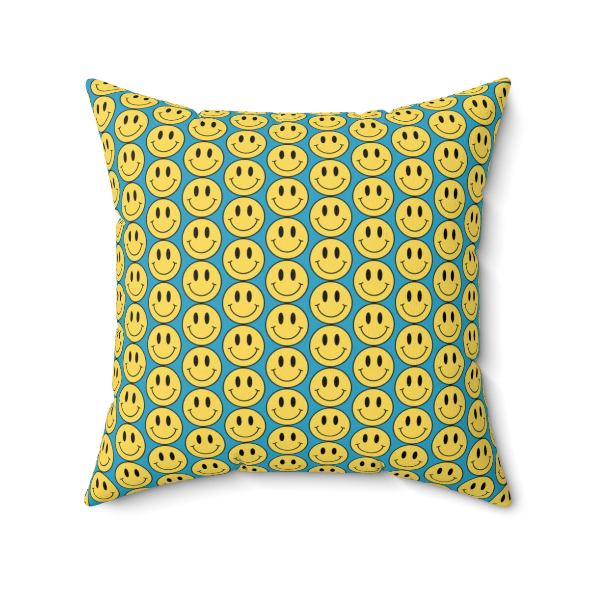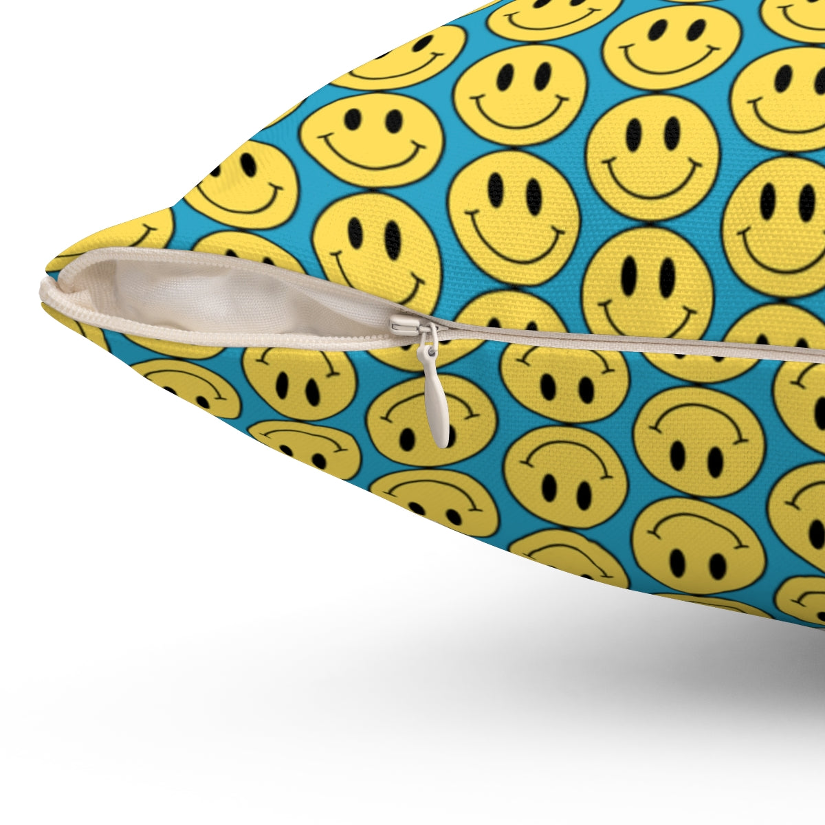 Yellow and Turquoise Smiley Face Pattern Spun Polyester Square Pillow