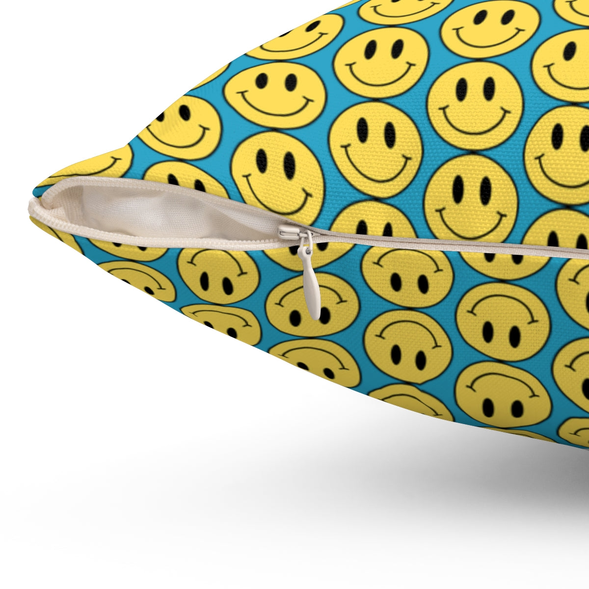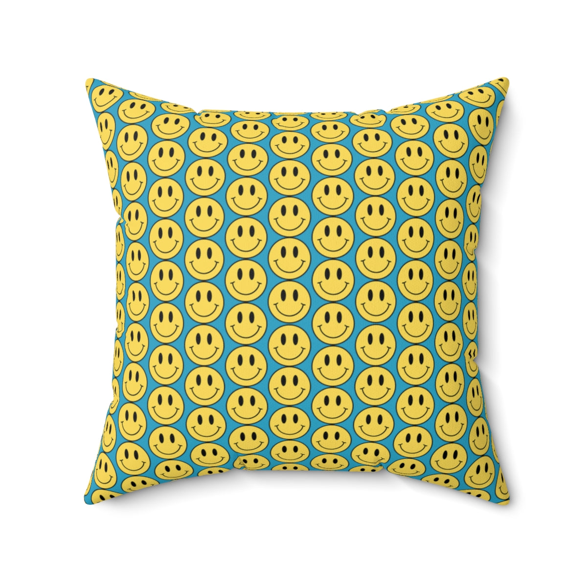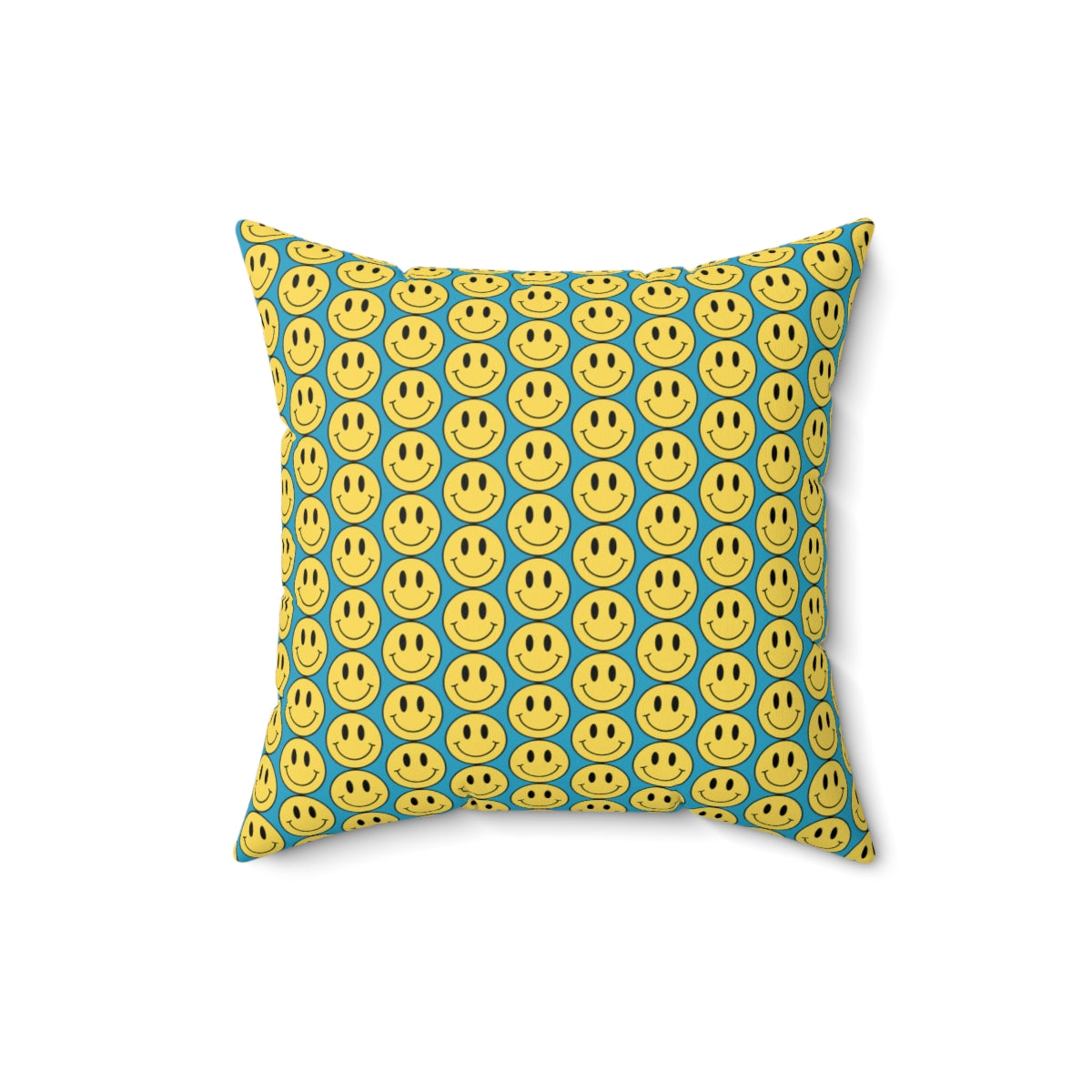 Yellow and Turquoise Smiley Face Pattern Spun Polyester Square Pillow