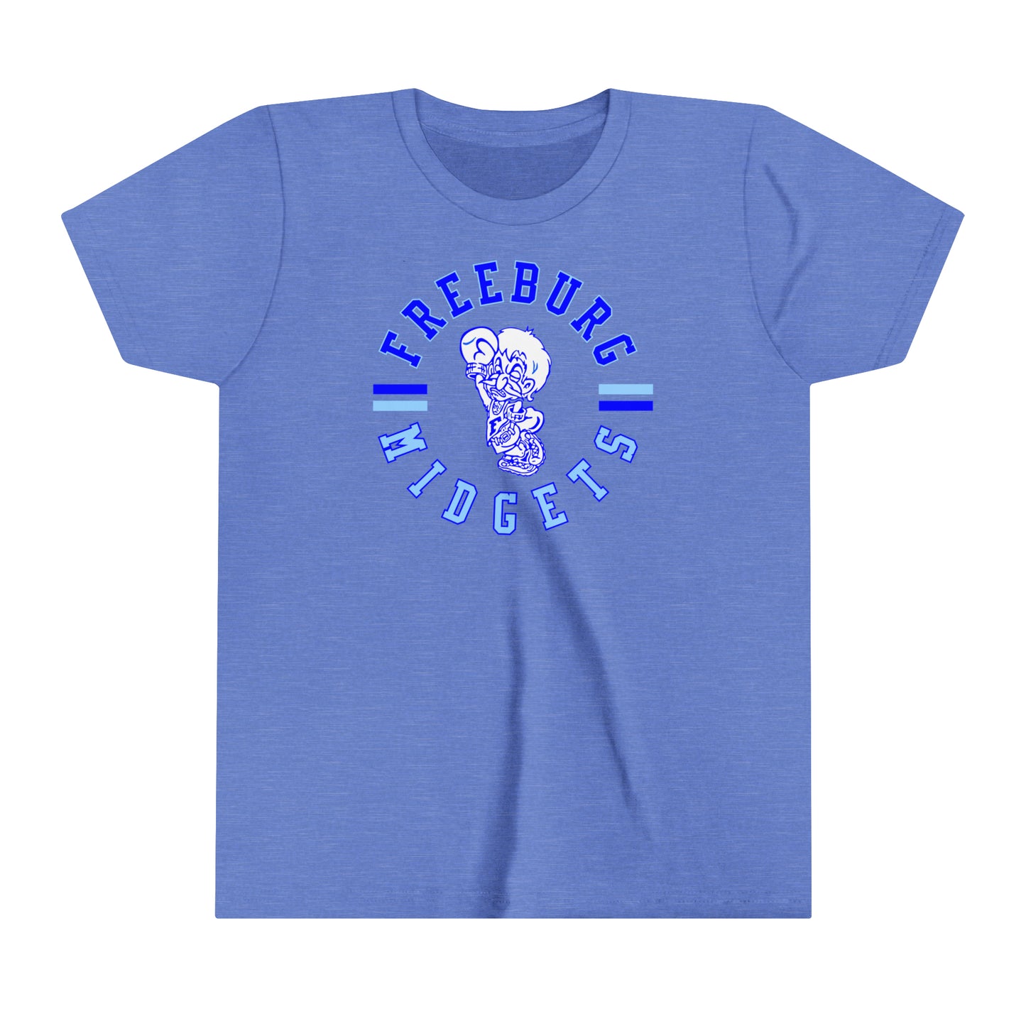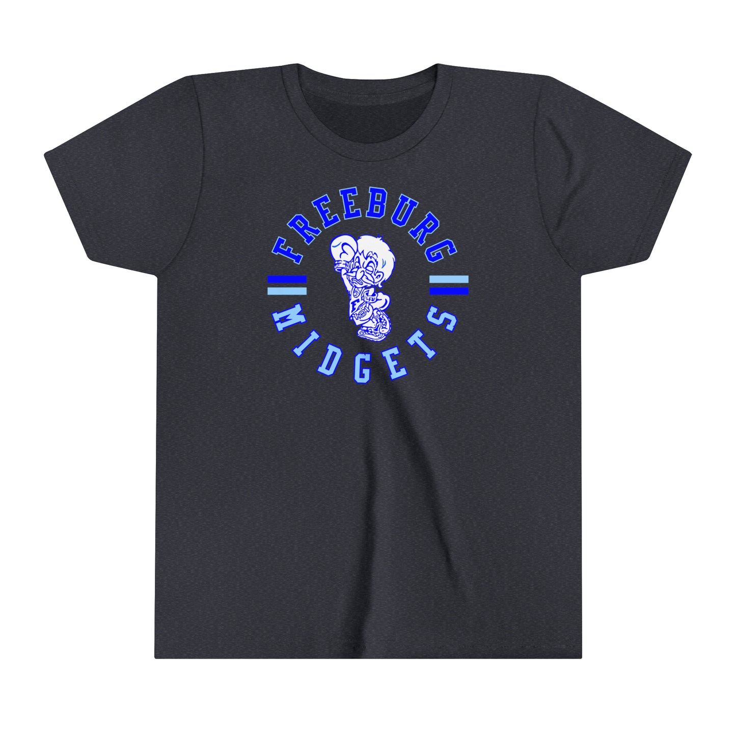 Freeburg Midget Spirit Gear! Freeburg Midgets! This lightweight side-seamed shirt maximizes comfort all day long. The ring-spun cotton makes this kids short sleeve tee perfect for displaying custom artwork. Side seams keep the garment's shape. The shoulders have tape for longer fitting. The collar is extra elastic due to ribbed knitting.