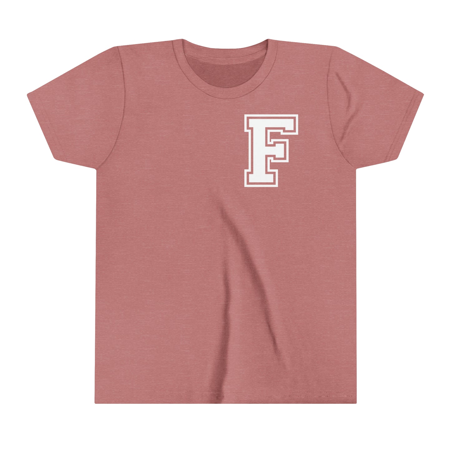 YOUTH - Front and Back Design - Varsity F Vertical Freeburg Midgets Logo - Short Sleeve Tee